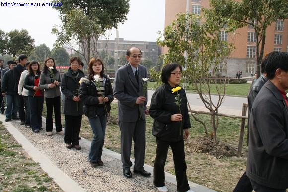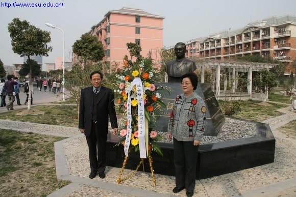 祭扫仪式由机关党总支书记杨和平同志主持。校长项家祥和党委书记赵佩琪,副校长程龙根和党委副书记王玉分别代表董事会和学院党政向夏老铜像敬献了花篮;参加祭扫仪式的每位党员依次鞠躬献花,黄白相间的菊花寄托着大家对夏征农老院长深深的敬意和怀念。
