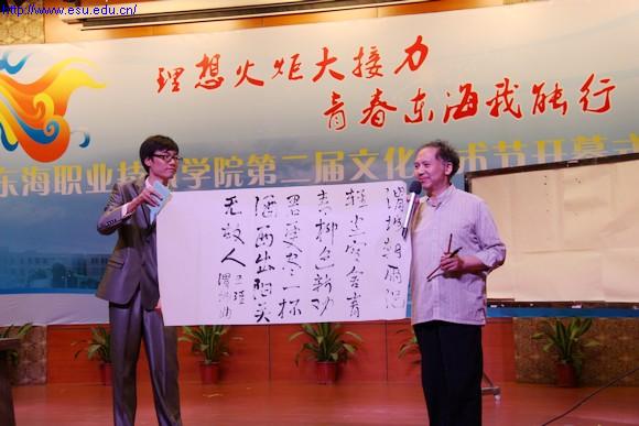 第二届文化艺术节开幕式于5月10日下午在报告厅举行,本届文化艺术节的主题为:理想火炬大接力,青春东海我能行。学校董事会、党政领导班子和师生代表400多人参加了开幕式,观看了演出。校长项家祥在开幕式上作了讲话,他从办学的宗旨出发强调了校园文化建设在学生成长中重要作用,并要求大学生能重视文化素质的提高。董事长曹助我宣布本届文化艺术节开幕,并报告了大家一个好消息,校长项家祥增补为中国民办教育协会高等教育专业委员会第一届理事会副理事长。党委书记赵佩琪将“理想火炬大接力,青春东海我能行”的旗帜交给了团委书记杨静老师,她希望大学生能为红旗增光,为学校添彩,做一个合格社会主义事业的接班人和建设者。