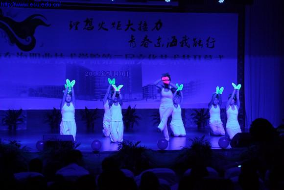 整场开幕式演出活力四射、青春洋溢,充满了年轻的动感。在开场表演健身舞中,年轻靓丽的女同学随着节奏伸展腾跃,充满青春朝气和魅力。印度舞《圣河》和小组唱《我的太阳》让在场观众感受到了世界文化的绚丽,东海的大学生也能传承、学习世界的先进文化。诗朗诵《匆匆》带着一丝淡淡的感伤,让人对时光的匆匆流逝感慨不已。小提琴独奏《查尔达斯舞曲》、民乐社表演都体现了同学们高超的演奏技巧惊艳了全场。充满传统韵味的古琴表演《阳光三叠》让在场观众仿佛时光穿梭,回到了过去,在古琴的伴奏下,信息系系主任薛万奉泼墨挥毫,独特的镜像书法技巧让观众佩服不已。跆拳道表演虽然是几位女学生,但是他们的动作充满力量,气场很大。空乘专业学生表演的《情系蓝天》中,与天空同色的空姐服,时刻挂着的温暖微笑,令在场的每一位师生动容。掀起本场晚会最高潮的部分当属情景剧《大手牵小手》,为了这次艺术节的开幕式,我校志愿者协会的志愿者们与崇明县结对帮困的小朋友们共同排练了很久,此次开幕式,他们作为特别表演嘉宾来到现场,舞台上志愿者们和小朋友共做游戏,共唱同一首歌。志愿者们还向小朋友们赠送了学习用品,当主持人问道:“小朋友,你们有什么感想要说的吗?”小朋友齐声说:“我们要谢谢东海的哥哥姐姐,我们要好好读书,将来考东海学院!”童稚的声音响彻全场,掌声雷动。舞蹈《茉莉花》在灯光的变化下,展现出来了一幅幅精美的画面,一朵朵含苞待放的花朵,象征大学生的茁壮成长。古诗词演唱《江南三首》是信息系系主任薛万奉老师的原创歌曲,也是学校优秀文化项目,歌曲充满着江南的韵味。方怡老师是专业的歌唱老师,她演唱的《沁园春雪》深情并茂,十分动听。而由学工系统的教师们所组成的合唱团则高歌一曲《党旗更鲜艳》是本台演出的压轴表演,收获了全场热烈的掌声。
