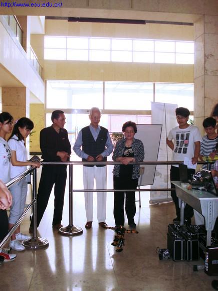 机器人展示得到了机电工程系主任杨萍老师的支持并在工程训练中心乔堋老师的协助下,机器人展示由王银月老师现场指导,机电工程系学生现场操作。机器人会随着指令做出不同的动作,经过的师生都纷纷被机电系学生亲手制作以及编程的机器人及机器小车所吸引,驻足观看。校级领导也对学生能自己动手制作机器人给予了充分肯定。