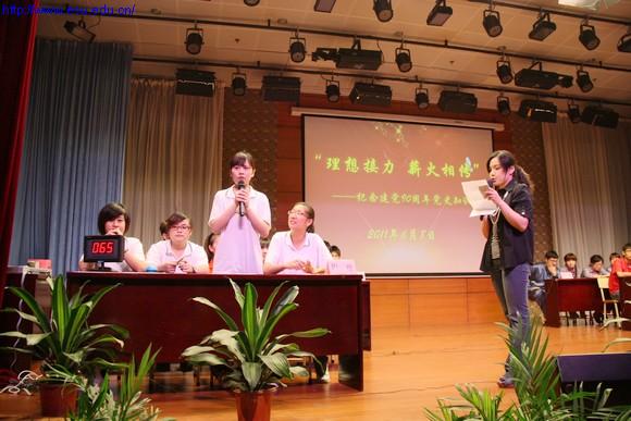 为纪念中国共产党成立90 周年,进一步引导广大学生、入党积极分子深入学习党的历史,加深对党的理想信念的认识和理解,6月8日晚,学校党校组织学生入党积极分子于报告厅开展了“理想接力 薪火相传”纪念建党90周年党史知识竞赛活动。学校党委书记赵佩琪、副校长程龙根出席了本次活动,党校学员和入党积极分子400余人观看了本次比赛。