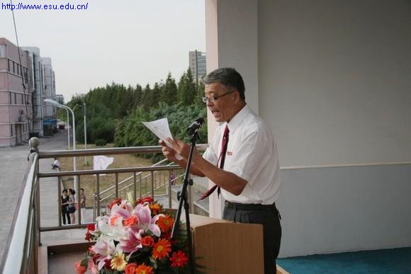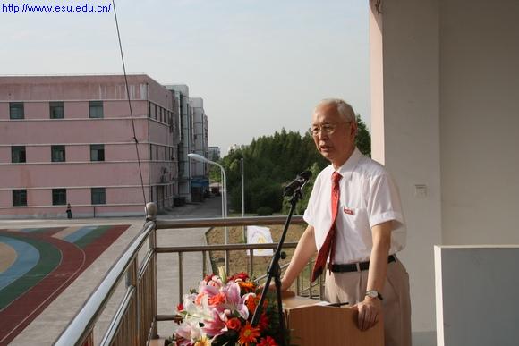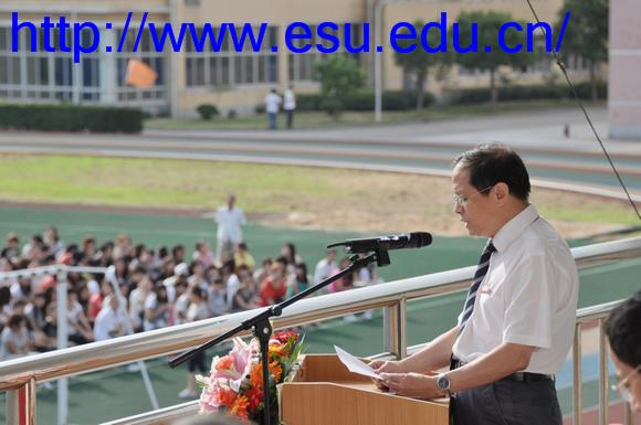 (图为校长项家祥在开学典礼上讲话)