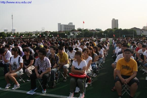 我校2011级新生开学典礼于9月5日清晨在学校操场隆重举行。九月的天气秋高气爽,1800多名新生排着整齐的队伍,踌躇满怀,带着小板凳就地而坐。学校董事会董事、党政领导及二级学院院长、系主任在主席台就座,会议由副校长程龙根主持。