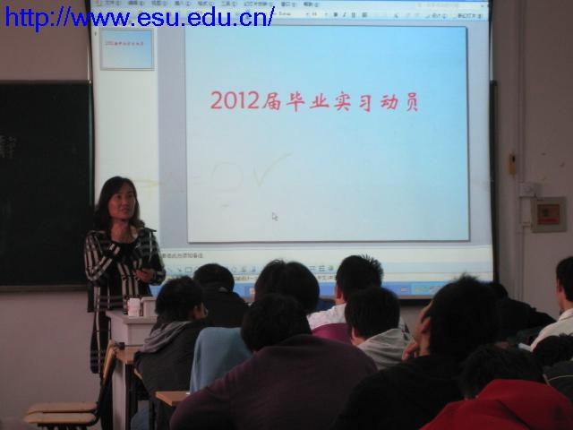 系主任杨萍给学生详细讲述了实习的意义、实习单位的选择、实习时间、注意事项以及实习报告的撰写等,要求全体同学要认真对待毕业实习。系办公室主任蒋久泉老师就实习的注意事项,实习纪律、实习安全等问题提出了具体要求。同学们认真听讲,向老师们提问和咨询。通过这次活动使同学们对毕业实习有了更多的了解和认识,大家表示:一定认真对待这次实习,努力提高自己。