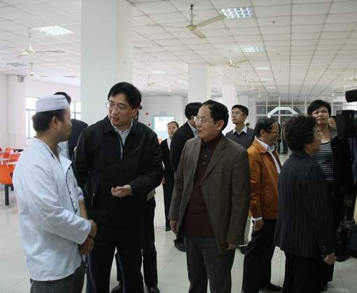 检查中,闵行区区长莫负春一行实地考察了新疆同学宿舍、清真食堂、专用浴室以及教室等。随后听取了校长项家祥的专题汇报,区教育局、区公安局、区民宗办、区卫生局、吴泾镇等有关领导分别对我校新疆学生宿舍管理,日常工作管理,学习管理等方面的工作进行了座谈。