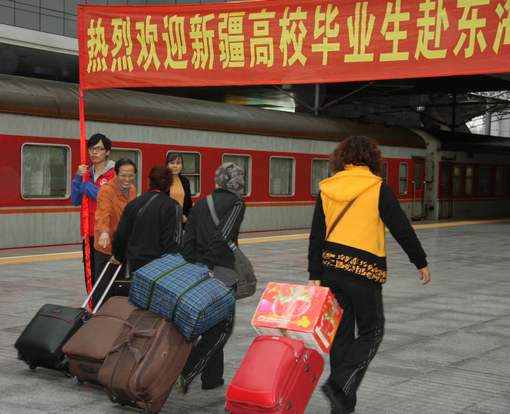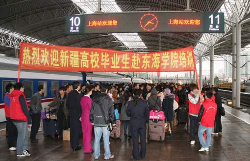 中午时分,校长项家祥,党委副书记王玉以及相关部门的负责人等顶着寒风,提前等候在上海火车站的站台上;志愿者们有的拉开迎接标语的横幅,当火车缓缓驶入站台,来沪的新疆学员们顺利下了火车,有序集合在站台中央,接受了上海市交流合作办孙国彪主任的热烈欢迎和亲切慰问,然后在志愿者