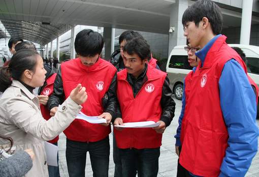 校党委副书记王玉在给志愿者安排具体接站任务