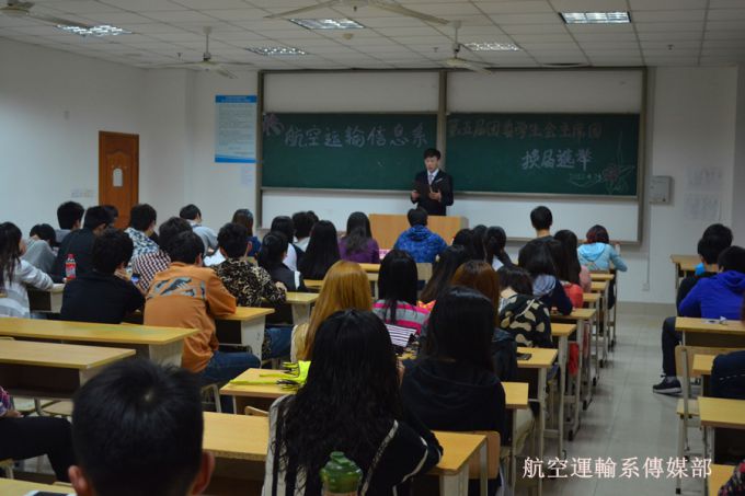 4月24日 航空运输系主席团换届竞选赛第一场顺利举行。选手们做竞选演讲,是否晋级由民意投票决定。台上选手们的深情发言,不拘风格,台下同学们的反应十分热情。通过本次竞选,学生会的同学们体会到了“团结,奉献”的真谛,相信新的主席团接过10届接力棒会更加努力,学生工作会更加丰富多彩。