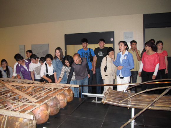 新疆少数民族学生在中国航海博物馆内留影
