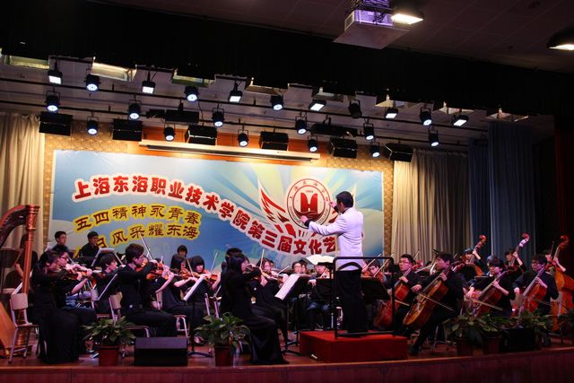 我校程龙根副校长以激动的心情表达了热烈的欢迎。为了能达到弦乐组的旋律、低音、和声三者层次清晰的效果,交响乐团采用美式席位排列,演出以《轻骑兵序曲》开场把吉普赛曲的欢快和忧郁交汇在一起,整个曲调的演奏娴熟而华丽,台下一片寂静被如雷般掌声打破。