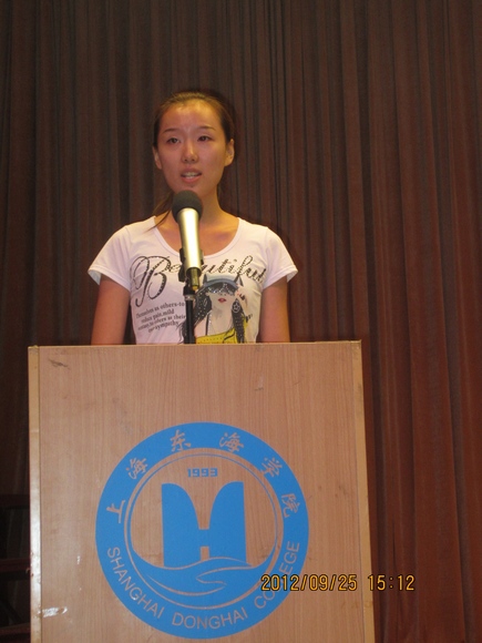 获奖学生会计101班班长程琳同学发言