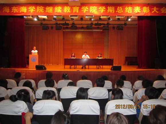 上学期初的总结表彰会上,学院曾发出向程琳同学学习的号召,全院掀起了向程琳同学学习的高潮,程琳同学的先进事迹已深入人心,其辐射效应正在激励很多学生努力学习。一学期来,程琳同学不负众望,继续努力,取得了更大的成绩。为了使大家学有榜样,赶有目标,在本次总结表彰会上,学院又宣布了《关于继续开展向程琳同学学习活动的通知》。程琳同学也在大会上谈了她成功的自考经验和学习体会,发言感人肺腑,让我们看到了一个生活在大家身边的普通学生的进步和成熟的过程。