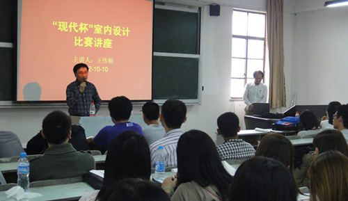 2012年10月10日下午,举办了“现代杯”室内设计比赛讲座,邀请了上海现代建筑设计院总建筑师王传顺前来主讲。专家和学生进行了的互动,开拓了学生的设计思路,增长了专业知识。