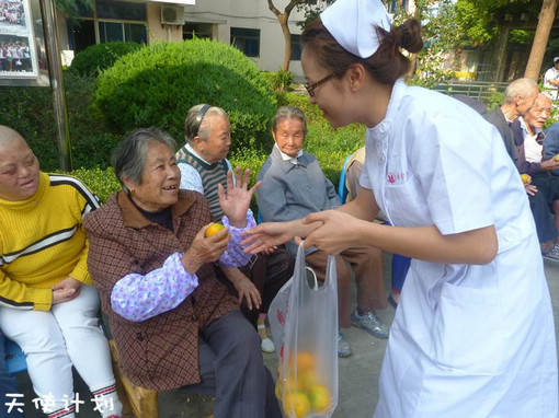 10月23日,护理系志愿者协会主办的“天使计划”活动正式启动,当天恰逢重阳节,在这个特殊的日子里,护理系志愿者协会的学生们带着礼物和爱心慰问了吴泾敬老院的老人们。他们为老人表演了独舞、合唱等节目,并给老人们分发水果,随后为他们测量血压并和他们一起拉家常。老人们打心底里喜爱这群白衣天使。离别之际,许多老人紧紧地握着同学的手不愿分开,在这个温馨的重阳节,“天使计划”活动受到老人们的欢迎,也得到了我院领导的高度赞扬。把爱心洒向社会,已形成了护理系师生的自觉行动。
