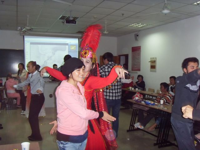 新疆同学的集体舞把晚会推向高潮。宿管员董家驹老师的《新上海滩》、干事石红英同学的《HIGH歌》与仇雨晴同学的《我的歌声里》各具特色的表演活跃了晚会的氛围。不少同学和宿管员参与到游戏活动中,引起阵阵笑声。会场上,笑声、掌声、歌声连成一片。迎新晚会拉近了学生公寓管理委员会各成员的距离,使宿管委这个大家庭的每位成员更加融洽和睦。