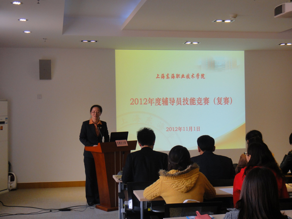 11月1,由学生工作部主办的2012年辅导员技能竞赛复赛如期举行,各院系分管学生工作办公室主任和学生工作部相关负责人担任大赛评委。