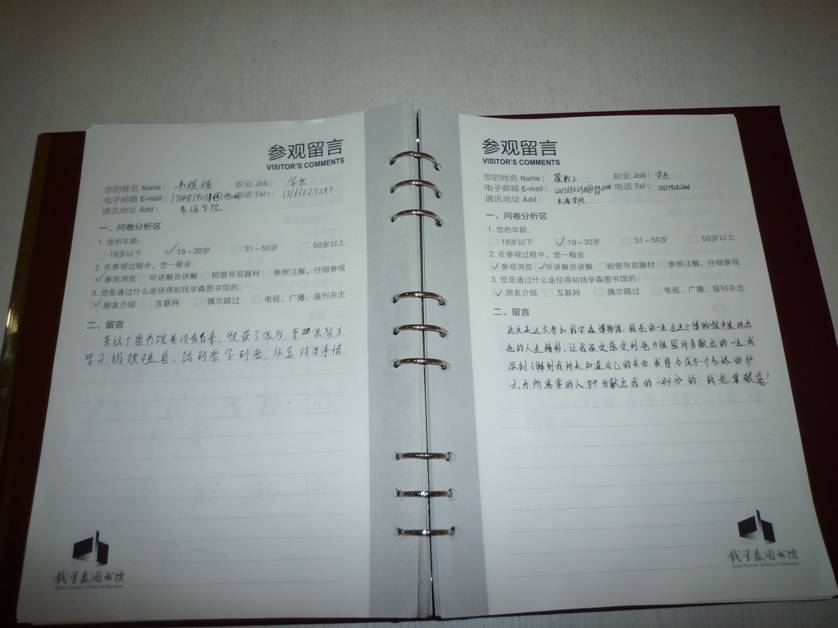 在一个多小时的参观中,同学们观看视频,了解了钱老对于中国导弹事业、航空航天事业的杰出贡献;聆听讲解员的介绍,知道了钱老不畏艰险,历经磨难,回国报效的爱国壮举;阅读文献,体会到钱老对中国系统科学作出的具有开创性的成就;撰写感言,表达了对钱老所展现的精神境界、文艺修养与人格风范的崇敬之情。