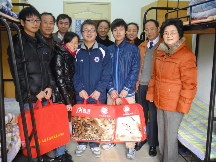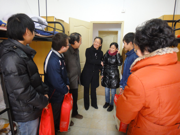走进学生宿舍,项校长和赵书记等便关切的询问起了同学们的生活和学习状况,关照大家在寒冷的冬季要注意保暖,适当运动。校领导一行还将精心准备的御寒毛毯和棉毛衫等物品送到家庭经济困难同学的手中,鼓励大家要努力学习,自立自强,积极进取,以优异成绩和表现回报社会、家庭和学校。同学们纷纷感谢学校提供的无私帮助,表示一定会好好学习,报答学校、父母
