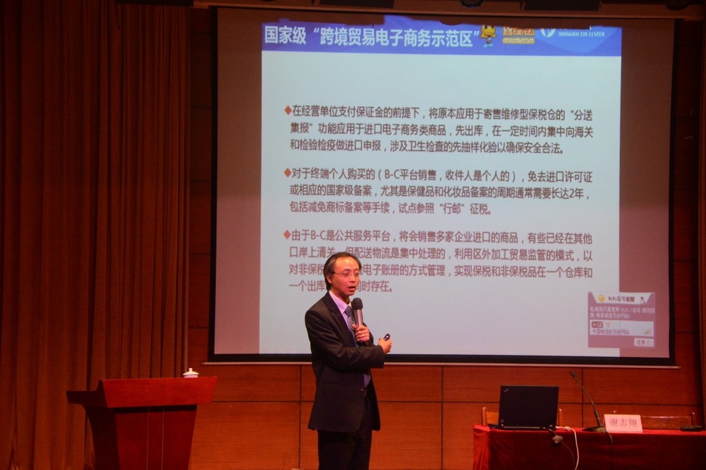 谢志翔老师深入浅出地讲述了有关电子商务的知识。他指出,当今社会正处于一个数据时代的开启阶段,是一个多变的、知识爆炸的时代,电子商务正是这个时代的产物。出口的相对减弱和井喷式的消费品进口需求使电子商务产业面临前所未有的机遇。他宏观地讲解电子商务的发展方向,微观地举出生活中电子商务的发展实例,详细地讲述了电子商务的发展历程。谢志翔老师还鼓励在场学生,他讲到到:“人的一生中一般会有五次机遇,第一次机遇因为年轻往往容易错失,最后一次机遇因为年老有心无力,所以剩下的三次机遇一定要牢牢把握。”