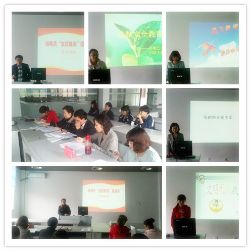 为了充分发挥“主题班会”在学生教育管理中的作用,进一步深化“主题班会”教育系列化、规范化、课程化建设,切实让班会成为辅导员实施教育、推进班级建设。艺术学院按照学工部的要求,辅导员在各自班级召开主题班会的基础上,于