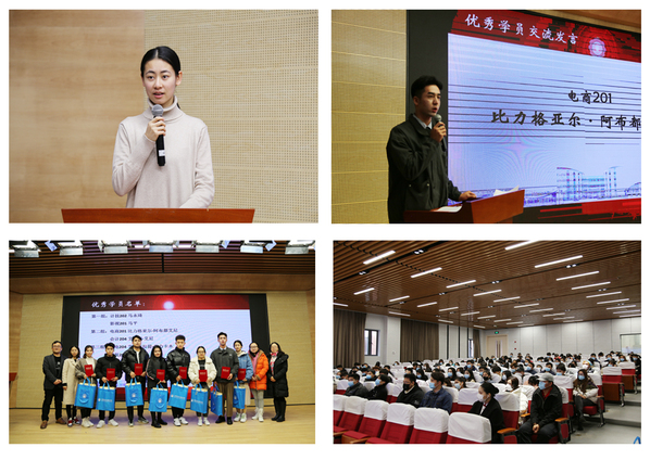 会议通过播放视频的方式回顾了团训的精彩瞬间。杨瑾宣读《关于表彰团辅优秀学员的决定》,并为优秀学员颁发荣誉证书、奖品。学生代表电商201班比力格亚尔·阿布都艾尼和服装202班马小艳与大家分享了心得与感悟。