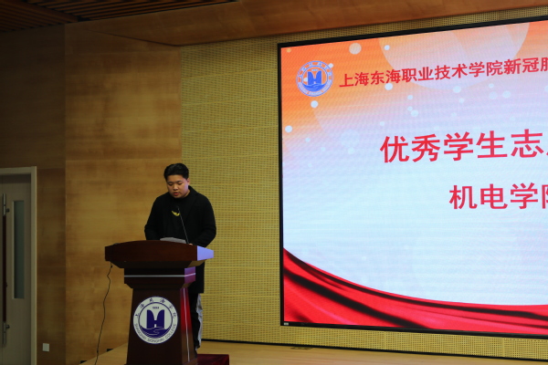 先进集体代表后勤服务中心职绚绚、先进个人代表教务处张居阳分别上台发言,分享疫情防控工作的经验和体会,表示将以更加饱满的热情和奋发向上的状态投入到疫情常态化下的岗位工作,用实际行动践行“敬业、奉献、创新”的工作精神,再创佳绩。优秀学生志愿者代表校团委朱婷、机电学院朱晓天也发言谈了参与抗疫的经历与感想。他们表示,在有限的生命里,通过奉献去收获有意义的人生体验是幸福而快乐的,将在以后的学习和生活中,继续学本领强技能,做知行合一的时代新人。