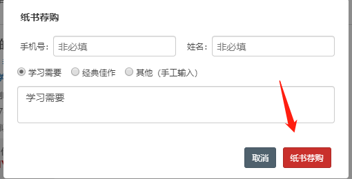 3、在选中相应图书后,点击加入荐购 => 纸书荐购 即可。