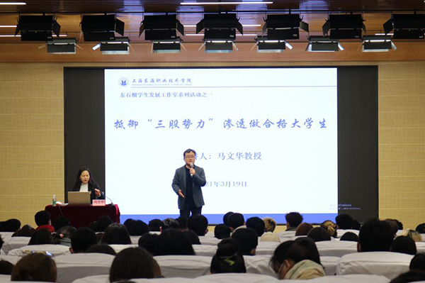 为引导民族学生树立正确的国家观、历史观、民族观、宗教观,筑牢中华民族共同体意识,坚决抵御和防范“三股势力”向校园渗透,确保校园安全稳定。学生工作部于3月19日在匠心苑学术报告厅举办了《抵御“三股势力”渗透,做合格大学生》专题讲座。本次讲座得到闵行区反恐支队的大力支持,特邀新疆驻沪教育工作组马文华主讲,讲座由学工部新疆办主任孔国锋主持,两百余名少数民族学生参加听讲。