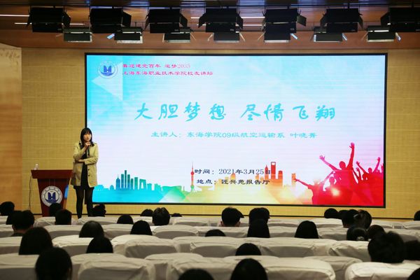 3月25日,东海学院09级航空运输系民航商务专业叶晓菁应邀回到母校,为师弟师妹们分享她的成长故事。