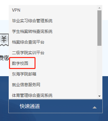 第一步:从官网(https://www.esu.edu.cn)快速通道栏目中打开数字校园链接。