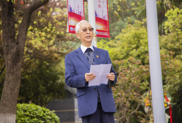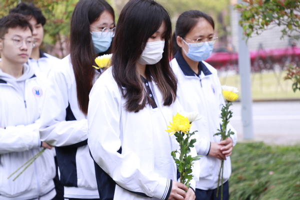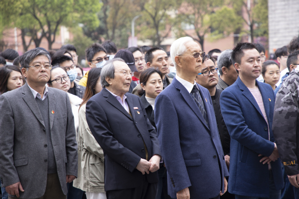 最后,校董事代表与党政领导代表全体教职工向夏老敬献花篮。参加仪式的师生代表怀着崇敬的心情向夏老铜像三鞠躬,依次献上菊花,表达怀念之情。