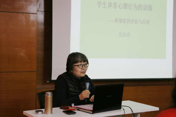4月9日,上海学校心理健康教育名师工作室主持人张海燕教授应邀给全体辅导员做《校园异常心理行为的识别——抑郁症的评估与应对》讲座,教授一线辅导员如何通过三原则来辨别异常心理行为。
