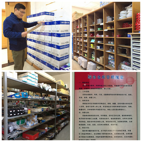 资产处综合仓库承担着全校办公用品、后勤维修材料等物资的储备保障任务,在做好日常入库、保管和发放工作的同时,依托仓存管理系统对所有物料成本进行精细核算,为实现降本增效奠定了基础。