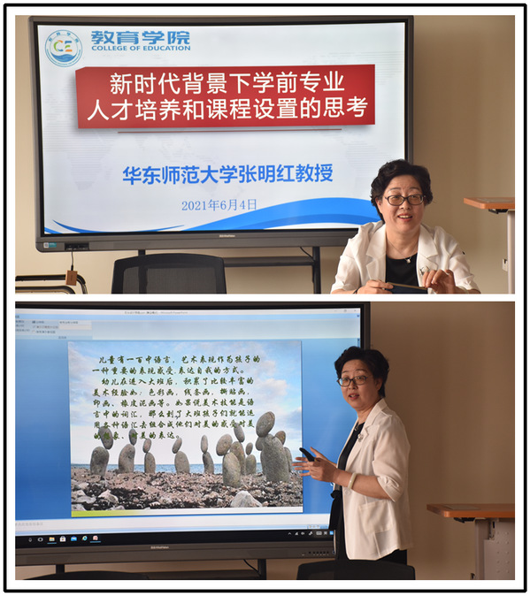 6月4日,华东师范大学学前教育系主任张明红教授应邀来到我校,为教育学院全体教工作了《新时代背景下学前专业人才培养和课程设置的思考》的主题讲座。