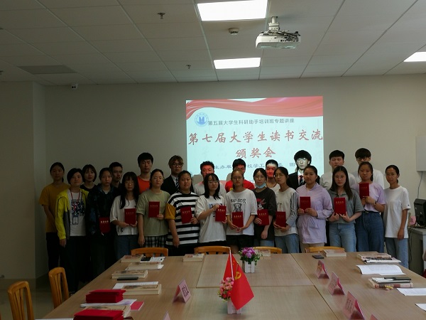 校党政办主任顾文业、学工部副部长王莉娜、团委书记任洁为获奖学生颁奖。一等奖代表经管学院史思、传媒学院徐嘉怡、杨禹来、教育学院薛婧怡等四位学术在大会上交流了自己读书心得。
