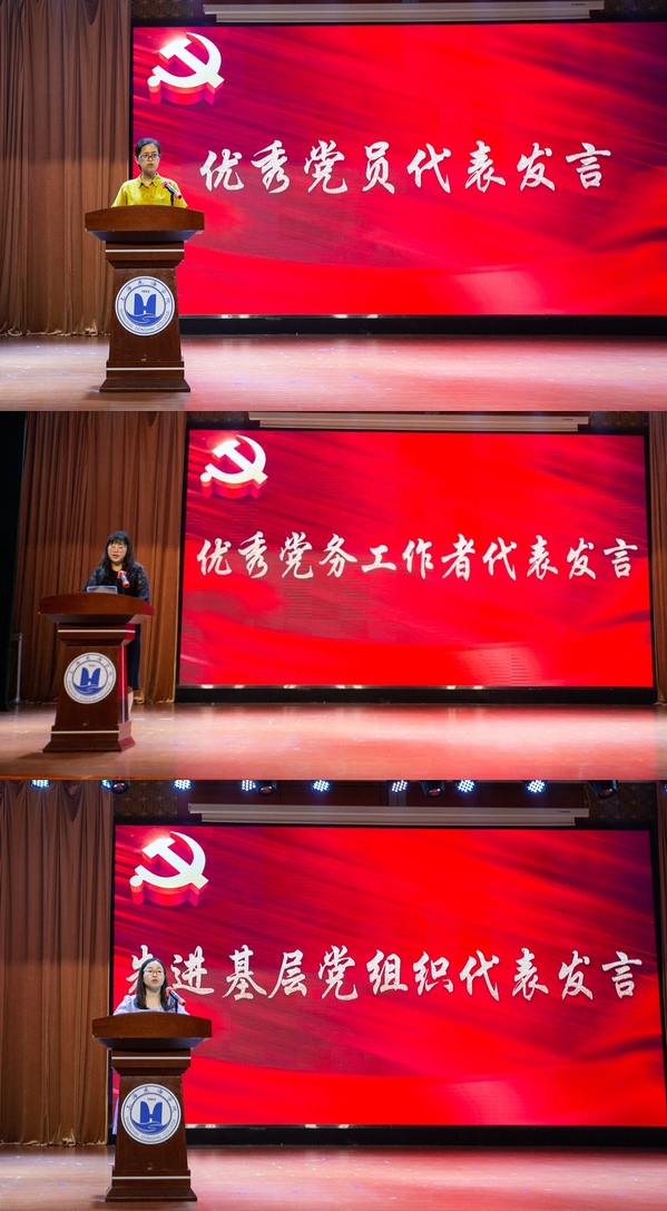 本次大会分为“致敬百年”“信仰力量”“血脉传承”三个篇章。在“致敬百年”篇章,党委书记曹蓉蓉以《百年风华正青春,不负时代创辉煌》发表讲话。“今天我们要告慰,100年来,一代又一代为人民幸福为民族复兴献出生命的先烈们:今天的中国,一切如你们所愿,我们无比珍惜并继续奋斗!今天我们要致敬:100年来,始终牢记初心和使命——为中国人民谋幸福、为中华民族谋复兴的中国共产党。”曹蓉蓉在讲话中说。她回顾了建党百年波澜壮阔的历史,强调中国共产党的100年是庄严承诺、忠实践诺的100年,是中国发生翻天覆地变化、实现历史性进步和飞跃发展的100年,是不懈奋斗创造辉煌开辟未来的100年。希望全体党员始终坚持共产主义信仰,始终坚持党的宗旨,始终坚持党的领导和党的建设,始终坚持党的革命精神、奋斗精神、奉献精神和自我革命精神,用习近平新时代中国特色社会主义思想武装头脑,传承光荣传统和优良作风。希望各党支部发挥好战斗堡垒作用,党员发挥好先锋模范作用,从建党百年历史和东海28年建校史中汲取前行力量,自觉肩负起为党育人、为国育才的神圣使命,用“忠诚”“责任”“奉献”“奋斗”照亮前行之路,为学校“十四五”开局和为未来发展作出贡献。