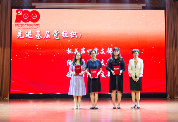 校长王刚宣读表彰决定,表彰学校开展“两优一先”评选中获得优秀共产党员、优秀党务工作者和先进基层党组织荣誉称号的个人和组织。