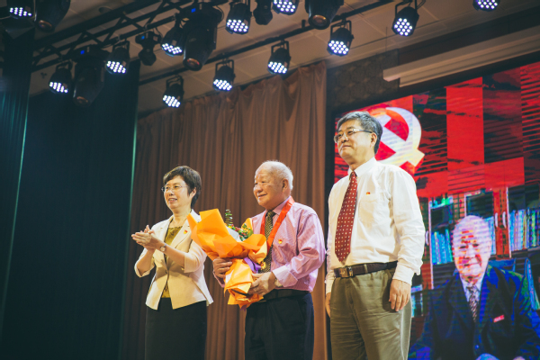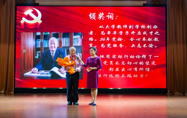 大会为校董事、创办人之一陶钧同志颁发“光荣在党50年”纪念章。金灿灿的纪念章,辛勤奉献路,这是陶钧同志的荣耀,更是东海学院的光荣。陶钧同志从学生时代入党,至今已有56年党龄。从大学教师到学校创办者,他一生奉献教育,为莘莘学子开启成才之路,为党服务,矢志不渝。“我是在大学期间班级第一批入党的学生之一,这是我一辈子最引以为傲的事。”陶钧在领取纪念章时说。