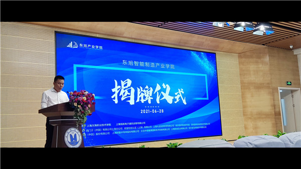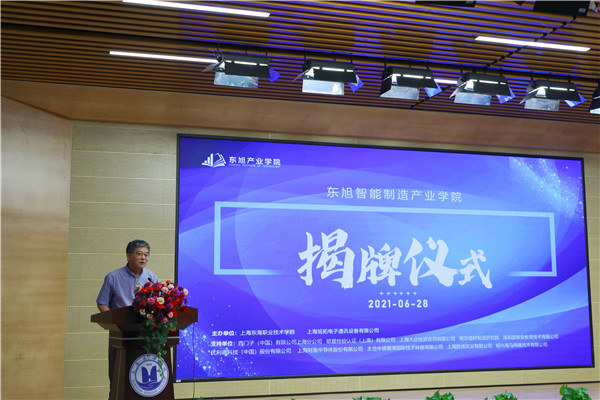 6月28日上午,东旭智能制造产业学院(以下简称产业学院)揭牌仪式在上海东海职业技术学院(以下简称东海学院)匠兴苑学术报告厅隆重举行。校党政领导、合作院校领导、上海旭拓电子通讯设备有限公司领导、西门子(中国)上海分公司等30多家企业代表参加了揭牌仪式。仪式由副校长卓丽环主持。