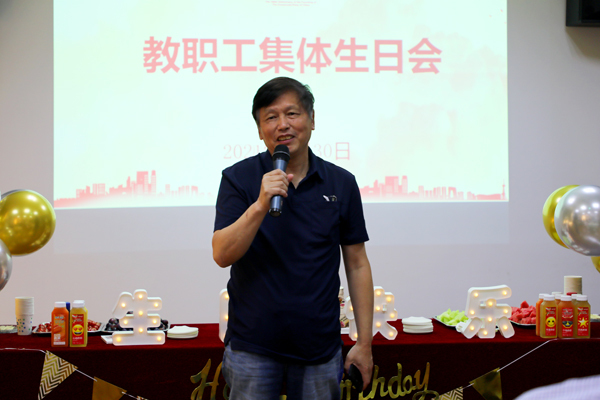 集体生日已经是东海的传统活动,校工会积极组织、精心筹划,只为让寿星们能够真切感受到东海大家庭的温暖,学校领导也非常重视,党政班子每年坚持亲临现场道贺,以情感人、以情留人,用浓浓真情感怀人心。党委书记曹蓉蓉在致辞中表示,过生日不仅意味着人又年长了一岁,更意味着每个人为东海的发展又贡献了一年的力量。东海28年来能够兴旺发展,并对未来充满信心,靠的就是这一位位多年来与学校同舟共济、砥砺前行的可爱教职工,因此学校领导对此始终抱持着感恩的心。同时,曹书记也希望寿星们同样感恩:感恩东海、感恩家庭、感恩党和国家,要用实际行动向党的百年华诞献礼。
