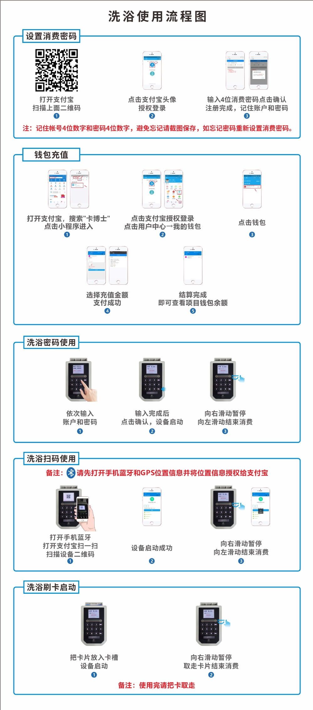 2、卡内余额需保证不低于5元,不然无法正常运行设备。