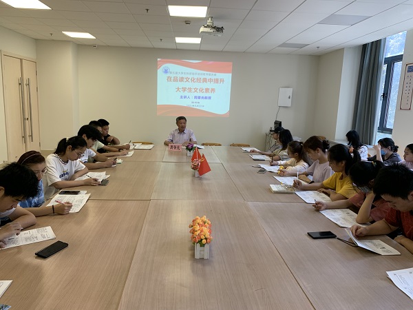 主讲嘉宾图书馆馆长周肇光教授从如何认识中华传统文化与文化素养关系、如何把握中华优秀传统文化内涵、如何品读中华传统文化经典三个方面展开论述。周肇光指出,中华传统文化是文化素养的基础,决定了一个人的深度、广度和亮度。它具有继承性、民族性、历史性和启迪性。他从儒家文化、道家文化、佛学文化三个方面举例讲解如何把握中华优秀传统文化内涵。周肇光说,品读中华传统文化经典,要努力做到三个结合:一是结合读书意义,养成读书习惯。二是结合价值观要求,把握中华传统文化经典内涵。三是结合自身发展实际,提高阅读中华传统文化经典实效性。周肇光要求学生们要在思想上树立“多读书、读好书”的理念不动摇,在行动上要坚持“静心苦读、勤于思考”的决心不动摇,在方法上要善于“利用图书馆资源”的路径不动摇。希望学生们做到只争朝夕、潜心读书,不断提升人文综合素养,实现人生的美好愿望。