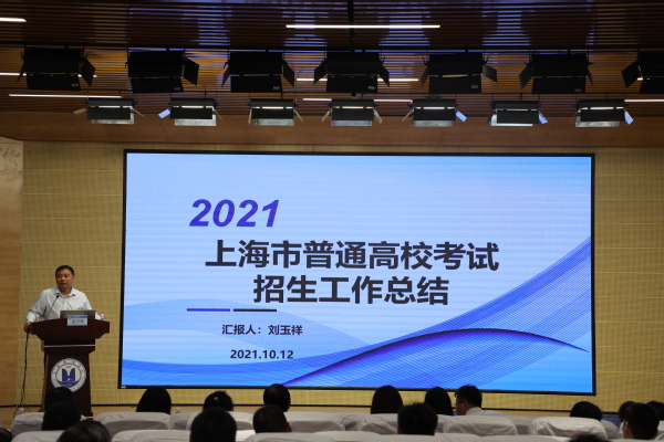 2021年上海市普通高校考试招生工作总结会于10月12日和14日在我校召开,分区招办专场和高校专场。市教委相关处室和市教育考试院、各区招考机构及全市各普通高校、新闻媒体等近200人参加会议。上海市教育考试院院长郑方贤主持会议。