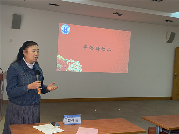 曹蓉蓉向新教师表示热烈的欢迎。随后详细介绍了我校的历史、发展现状及未来规划,并勉励青年教师要把教师这个崇高的职业作为自己为之奋斗的事业,尽到教书育人、立德树人的责任。她希望新教师们做好三个方面:一是要以《新时代上海高校教师职业行为十项准则》为要求,明确道德底线、规范言行举止。二是要以身作则、为人师表,以自身人格魅力引导学生听党话、跟党走,切实践行社会主义核心价值观。三是进一步加强师德师风建设,不忘初心,潜心教育,以努力成为有理想信念、有道德情操、有扎实学识、有仁爱之心的好老师而不断奋斗。她希望各位教师能够通过自己的努力,满怀理想、勇于创新,为东海的发展添砖加瓦,书写无悔的人生篇章。