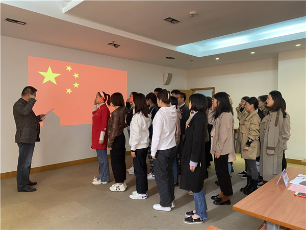 会议在领导们为新教师佩戴校徽的仪式中拉开序幕。在全国教学成果一等奖负责人严玉康教授的带领下,全体新教师面向国旗庄严宣誓:忠诚人民教育事业,依法履行教师职责;为人师表,敬业爱生,严谨治学,修身立德。