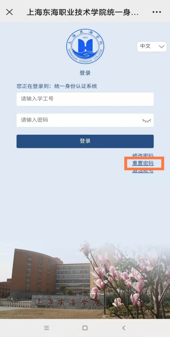 3、选择“重置密码”,电脑端可直接打开网页https://sso.esu.edu.cn/