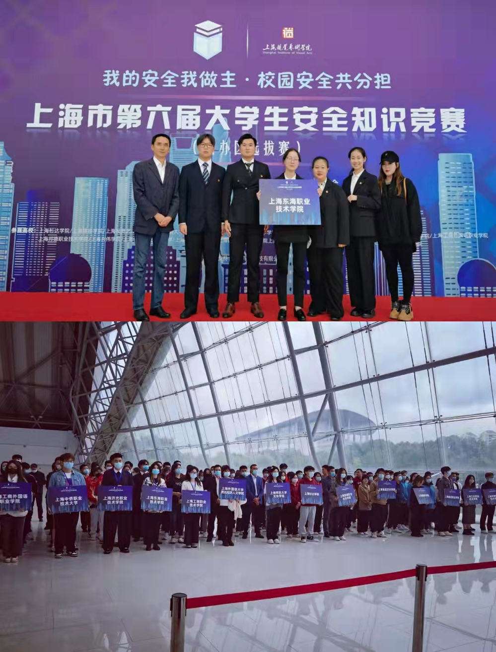 为全面贯彻落实总体国家安全观,进一步巩固上海市高校安全教育成效,推动大学生安全教育向纵深发展,11月6日,由上海市教育委员会主办的上海市第六届大学生安全知识竞赛民办区选拔赛在上海视觉艺术学院举行。由艺术设计学院的辛天泽、陆宇琼、马小艳、张雨荷、季玉豪五名同学组成的上海东海职业技术学院代表队在此次比赛中取得佳绩,荣获二等奖。
