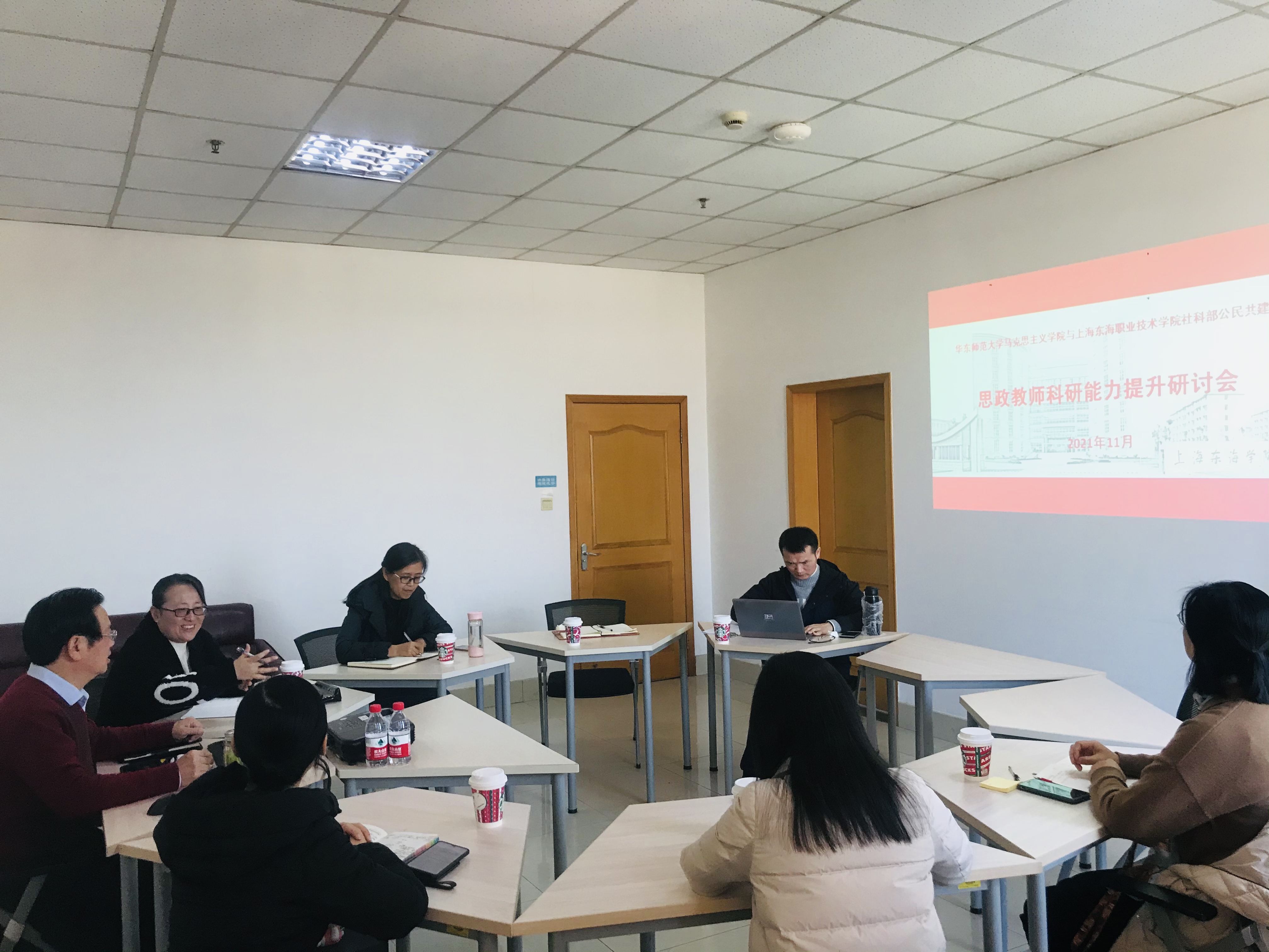 社科部和华东师范大学马克思主义院公民共建的项目深入推进,11月24日,社科部邀请到华师大马克思主义院王建新教授开展思政教师科研能力提升的专题培训,社科部主任龙燕主持。