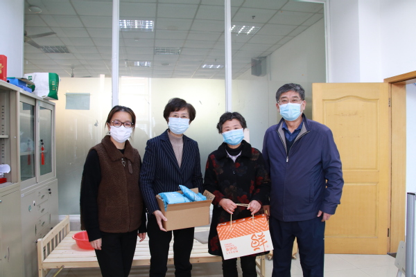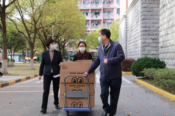 校领导依次走访各个学院与职能部门,发放抗疫物资和慰问品,并与驻守教职员工亲切交流,了解其工作生活现状,对他们这段时间的坚守和奉献表示感谢,希望他们做好防护同时,齐心协力,共克难关。
