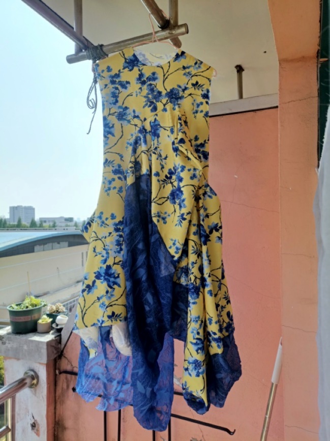 因为疫情改为线上授课,而传统的立体裁剪课程需要学生有与课程教学相配备的人台及布料等,在此在教学条件有限的情况下,东海学院艺术设计学院教师陈超将国外“减法立裁”理念引入课堂。
